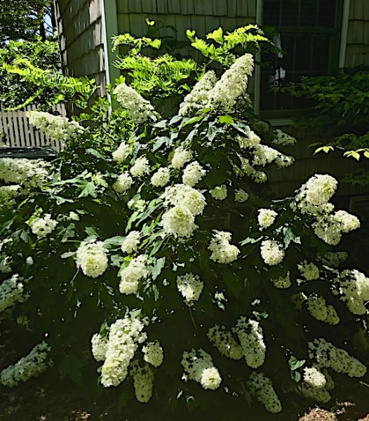 A selection from our friend Richard Davis, this new, double-flowered Oakleaf Hydrangea has 12-14” panicles of flowers that age from creamy-white to a stunning combination of rose-red, olive green and cream. Each panicle is held by a super sturdy stem, which eliminates flopping. The plant grows 4-6 feet tall and shows off each fall with vibrant colors of deep wine and burnt orange. Compared to ‘Snowflake’ and other double-flowered selections, Snowcicle has much larger panicles, improved vigor, and sturdier branches.