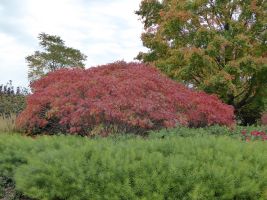 A deciduous multi-stemmed shrub with a refined, compact habit making it much smaller than the species. Prairie Flame has extremely glossy, attractive foliage, creamy-white blooms in late July and striking deep red fall color. This compact sumac can be grown in a wide variety of soils and landscape conditions. It is very drought-tolerant and grows best in full sun. Flame is an excellent colonizing plant. Plant it in front of evergreens to maximize its glorious fall color. This selection is fruitless and thrives as a companion for native or naturalized plantings. It is also useful for soil stabilization on slopes. This superior selection is perfect for massing and naturalized plantings. Planted as a specimen or en masse, this sumac will provide a colorful display from late spring with its extremely glossy foliage through a full frost with its dependable, fire-engine red fall color. Also useful for slopes, open areas and roadside plantings.