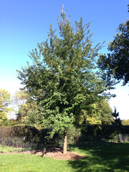 Commendation™ elm was selected for its rapid growth, robust size, cold tolerance, broad adaptability, and excellent resistance to Dutch elm disease. This tree with its symmetrical arching branches develops an attractive upright to oval habit over time. The large, dark green leaves turn yellow in autumn. It is moderately susceptible to insect problems, notably elm leaf beetle, Japanese beetle, and gypsy moth. Resulting from a controlled cross conducted by Dr. George Ware at The Morton Arboretum using Accolade™ elm (U. davidiana var. japonica) as the female parent and a hybrid elm (U. pumila × U. minor) wild-collected in Russia as the male parent.