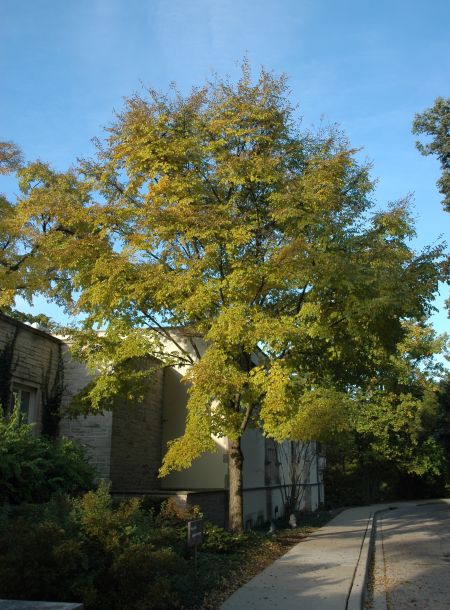 Accolade® elm was selected for its vase-shaped habit with upright arching stems reminiscent of the American elm, (U. americana). Accolade® elm has proven to be a robust and vigorous grower, and is also valued for its fine-textured, dark-green glossy foliage, and yellow fall color. This selection has very good resistance to Dutch elm disease and elm yellows, and is also highly resistant to elm leaf beetle. Accolade™ elm is a chance seedling selection from The Morton Arboretum collections. Both Accolade® and Danada Charm™ elms resulted from open-pollinated seed collected at the Arnold Arboretum from Ulmus davidiana var. japonica. Society of Municipal Arborists 2012 Urban Tree of the Year.