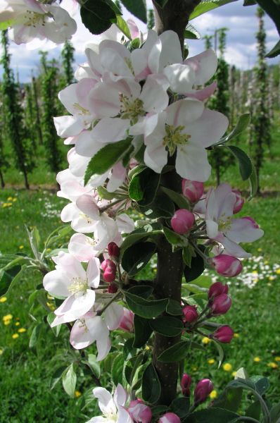 Did you know apple trees have really pretty flowers? Beautiful flowers to feed the bees in the spring and truly tasty fruits in the fall.
