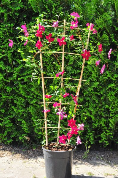 Burning Love (also called 'Vitiwester' in Europe) is a cross between the deep red, velvety flowered 'Westerplatte' and a pale blue selection of the species C. viticella, which is resistant to wilt. The luscious, velvety red blooms are plentiful on this late summer bloming, medium sized climber
