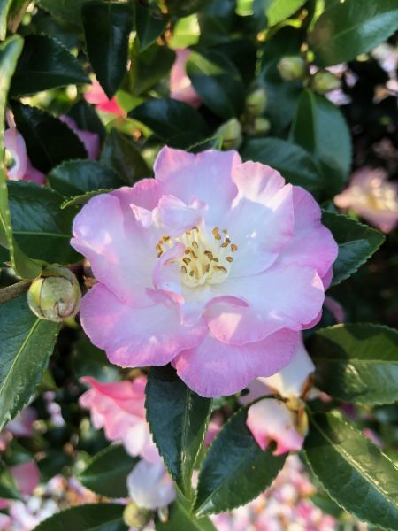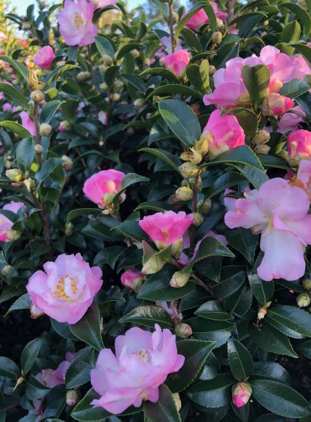 Camellia sasanqua is a fall blooming species. Some of these new selections have proven hardy in USDA Zone 6, but we are saying zone 7 to be safe. As summer fades and the nights begin to cool, the October Magic™ Series usher in the camellia season in beautiful fashion. Graceful in form and one of the loveliest of autumn flowers, the soft fragrance of sasanquas conjure up memories of southern gardens amass with blooms. These new selections offer all of the nuances we’ve grown to love in sasanquas and then some. There’s a shape, size and color to fit any garden. Incredibly large flowers are not normal for this species, but Dawn has broken the mold. Girly pink and porcelain-like in nature, these are the ultimate tribute for a newly born baby girl. Plant Dawn in her honor and she will grace you with her huge, soft pink flowers for many years to come.
