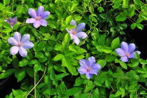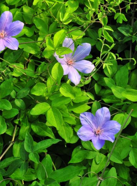 Lots of deep lilac colored flowers cover this smaller climber each spring and early summer. This clematis will rebloom if you prune it after it's first flowers fade.