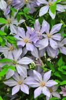 Many silvery blue flowers adorn this perfectly sized climber in early spring. This is a perfect clematis for an obelisk or medium sized structure.