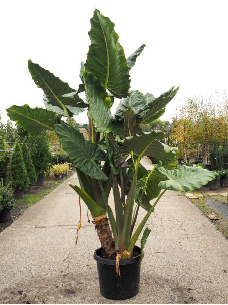Gigantic leaves standing straight up to salute you as you walk past this tropical beauty. Enormous, rippled , deep green leaves with a light green stems and veins make this new selection a stunner. One might ask if this is an improved form of the beloved ‘Borneo Giant’ and we would have to say, "It is indeed improved!"