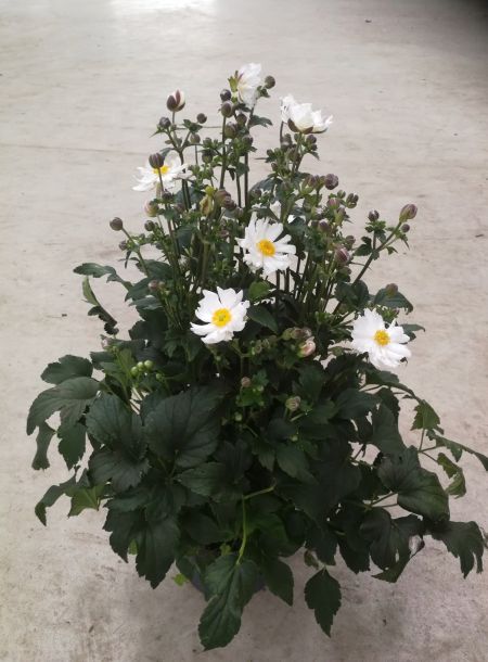 Single, bright white flowers on a vigorous plant with massive flower production.