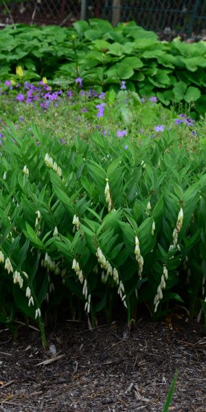 Polygonatum, also known as King Solomon's-seal or Solomon's seal, is a genus of flowering plants. It is placed in the family Asparagaceae, subfamily Nolinoideae. These are typically woodland edge plants.