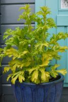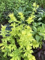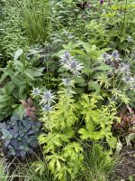 We are proud to be representing this new sea holly in partnership with our friends at Plants For Europe in the united Kingdom. The first all-gold leaved Eryngium! Bright golden leaves and bracts contrast greatly with the steel blue stems and flower heads. A lovely, eye-catching color that does not burn. Leaves emerge bright yellow, fade to chartreuse and then age to a lovely gold and green combination. The long lasting, electric blue flowers are surrounded by bracts that are graduated from silver to gold and then soft lavender. Neptune's gold was selected by breeder Neil Alcock in the UK and introduced by Plants for Europe. It makes an excellent container specimen or addition to a combo planter. The plants are totally stable and never revert. Awards: Shortlisted for Plant of the Year Award, RHS Chelsea Flower Show 2014