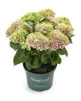 We know you will love the long-lasting, strong flowers of the Magical® series with their variety of colors, handsome foliage, and long-lasting flowers. As the flowers age, they change from one exciting color to the next. You will enjoy many colors at one time, as each flower lasts for months. Each stem is a bouquet, and even a young plant will give you months of blooming enjoyment. Amethyst has sturdy, long-lasting flowers held high on thick, upright stems that begin as pink or blue and age to fuchsia pink or violet blue, depending on the soil's acidity. The flowers last for weeks on the plant or in a vase in their final color, lime green, a new favorite of many brides. You’ll want this beautiful new selection in your garden for viewing and for cutting year after year.