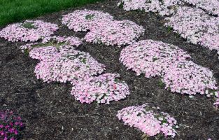 Like ‘Plumtastic’, ‘Strawberries and Cream’ was selected for flowers that darken in color with age, yet are attractive in all color phases. ‘Strawberries and Cream’ blooms for four weeks, commencing in late April in northern Illinois (USDA Zone 5). Test plants were 90 percent covered with flowers at peak bloom in early to mid-May. The ¾-inch-wide flowers are nearly white with a light violet-pink blush upon opening, aging to medium and even dark pink-violet. The broad petals make for full flowers, adding to the display. This is a slightly larger and more vigorous grower than ‘Plumtastic’, with three year- old plants growing to 4 inches tall in their centers, 2½ inches tall around their edges, and to 18 inches wide. Winter survival has been excellent, with minimal damage. Overly wet or compacted summer soils can lead to foliage loss for this plant.