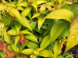 Bright yellow leaves with pumpkin orange highlights brighten the spring garden.
