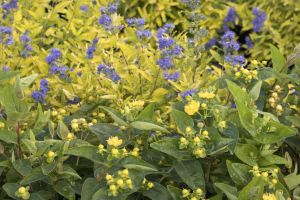 FloralBerry®️ Chardonnay is completely covered in bright, yellow flowers in spring. Each fall, the plant is blanketed in luminous yellow berries on a fuss-free shrub. Ideal for borders and mixed containers, this Hypericum also stands out when mass planted in showy drifts. A shrub that contributes to the indoors as well as out, ornate, fruiting stems are excellent to add to early autumn floral displays.