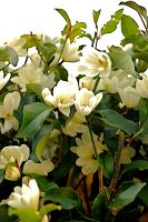 From late winter to early spring fuzzy, brown buds begin to form in the leaf axils. They open to a display of creamy-white flowers that lie across the branches evoking a sweet, alluring fragrance. The perfect size for smaller landscapes, these lovely evergreens have proven to be quite undemanding when planted in sun to partial shade as long as they have moisture retentive soils. They can be used as flowering hedges or as stand-alone specimens in place of Camellias or Ligustrum. A pH range of 5.5-7.5 is ideal and mulching is desirable.
