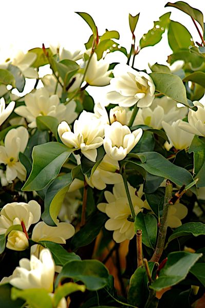 Formerly classified as Michelia yunnananensis, (which is what we are comfortable calling them), these pearls of southern China have been lumped into the Magnolia family by taxonomists and are now referred to as Magnolia laevifolia, (syn. yunnanensis). But, regardless of the class you choose for them (yes, plants are judged by their families too) these new selections are destined to become anchors in the temperate gardening world.