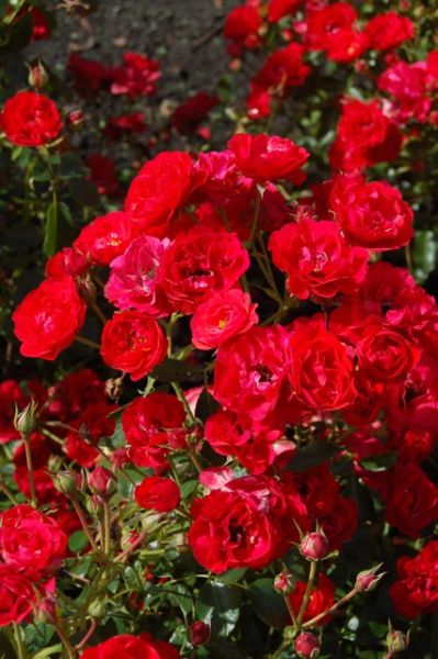 A mounding, easy to care for rose with semi-double, red flowers that bloom from spring through summer. Ideal for urban gardens where a manageable size and showy flowers count is important. Lovely in mass plantings, on a slope for erosion control, or in coastal settings, where they are tolerant of salt air.