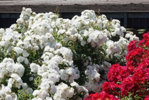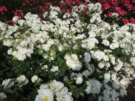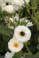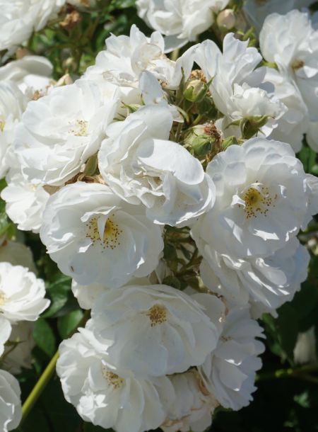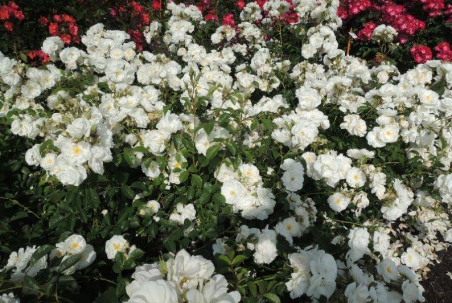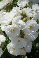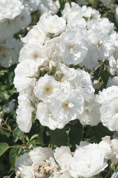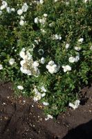 A low growing, disease resistant shrub rose with semi-double pure white flowers for most of the summer.