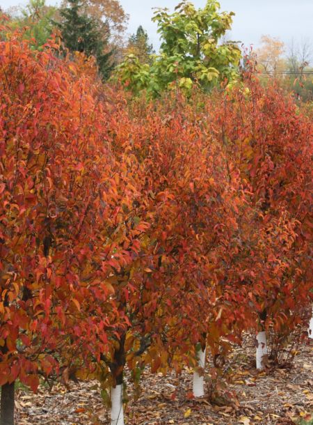 An adaptable species that can tolerate wet sites, this low-maintenance tree is at its best when planted in sandy or clay loams in slightly acidic soil. It performs best in full sun or partial shade with regular moisture, where it becomes dense and more uniform. Ideal in a naturalized setting along a stream or pond, or as a specimen tree. Fire Belle is certain to light up your garden space through the cool days of autumn.