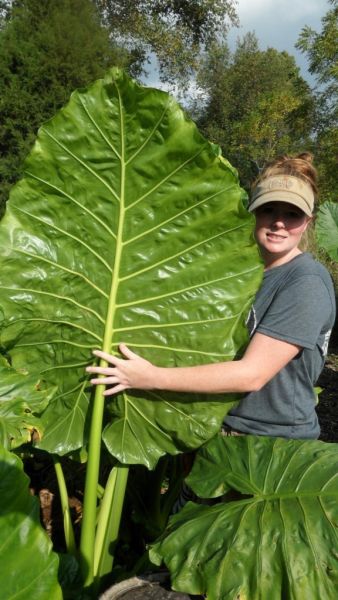 Gigantic leaves standing straight up salute you as you walk past this tropical beauty. Enormous, rippled , deep green leaves with a light green stems and veins make this new selection a stunner. One might ask if this is an improved form of the beloved ‘Borneo Giant’ and we would have to say, "It is indeed improved!"