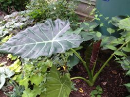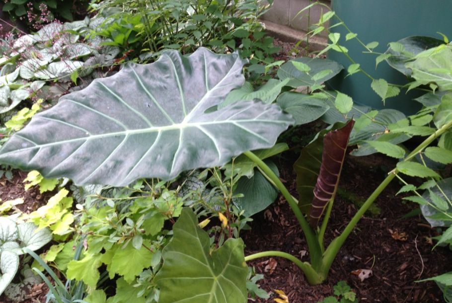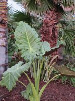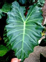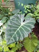 We are thrilled to bring you this strong and powerful new selection from the tropical tempter, breeder Brian Williams. Mayan Mask commands attention with bold, upright leaves and strong, sturdy, stems. Each leaf unfurls with a satin texture and bright, pale green veins, but matures to glossy grass green with chocolate undersides.