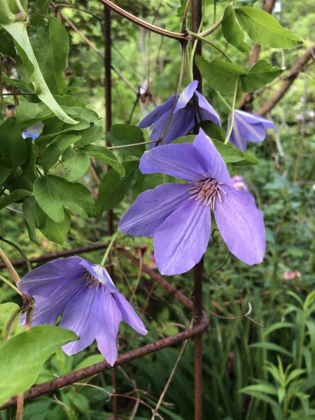 Sugar-Sweet Lilac is one of the first flat, scented clematis ever produced in cultivation. Sweet honeysuckle perfume surrounds each violet-pink bloom throughout the growing season as it climbs 6-9 feet tall. As blooms mature, a lilac stripe appears in the center of each petal, giving the blooms dimension. This incredibly hardy, wilt resistant beauty blooms from April to June in most gardens. One of our clematis friends, Deborah Hardwick, a long time member of the Clematis Society, made this comment about the frangrance: "A lemony sweet fresh fragrance with a back note of vanilla. Very sweet and pure but not cloying. Divine!"