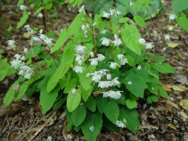 I’m happy to bring you another superb epimedium selection, brought to us from the garden of Dr. Richard Lighty, former Director of Mt. Cuba Center for the study of Piedmont Flora. Plants Nouveau is introducing this plant in conjunction with The Conard-Pyle Co. Alabaster is a seedling of E. diphyllum , probably crossed with E. youngianum 'Niveum'. It originated in a groundcover planting of E. diphyllum in The Lighty’s garden outside of Kennett Square, PA. The violet purple in the flowers comes from the light purple, cauducous Sepals, otherwise, they are truly crisp, clear white. The mother plant of this selection has been growing in the garden for over 10 years.