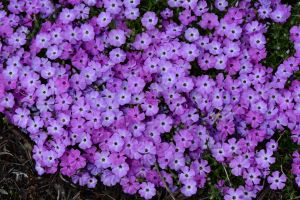 Phlox ‘Plumtastic’ takes moss phlox breeding in a completely new direction. This hybrid produces novel flower colors not found in Phlox subulata, as well as flowers that deepen in color as they age, unlike P. subulata, whose flowers can fade over time. Reliably lower-growing and possessing possibly higher pH and salt tolerance than P. subulata adds to its novelty. The key was crossing Phlox subulata with the western species Phlox kelseyi, which is a deciduous, mat-forming species found in high salinity and high pH, seasonally wet habitats in Idaho and Montana. This is a tough species for durable hybrids. While P. kelseyi is temperamental in cultivation in the eastern and midwestern United States, it has imparted novel traits in this hybrid.