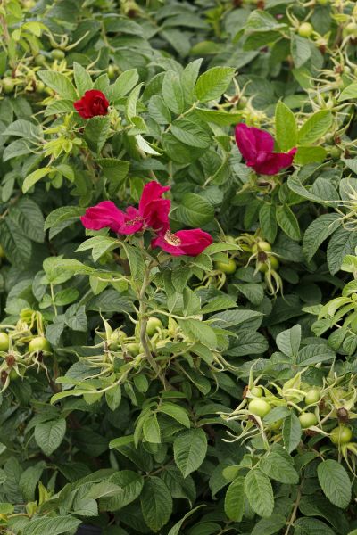 Rugosa Roses are known for their incredible hardiness and can be relied upon to provide color and interest in harsh landscapes where dry soils, strong winds, and salt spray prevails. In late spring captivating flowers pull you in with their musky aroma and continue to bloom in profusion through summer. As the flowers fade, orange-red hips form, adding yet another element of surprise. Extremely disease resistant – especially when grown in full sun - these Roses will keep pollinators busy, attracting insects, butterflies, and birds through their long season of flower.