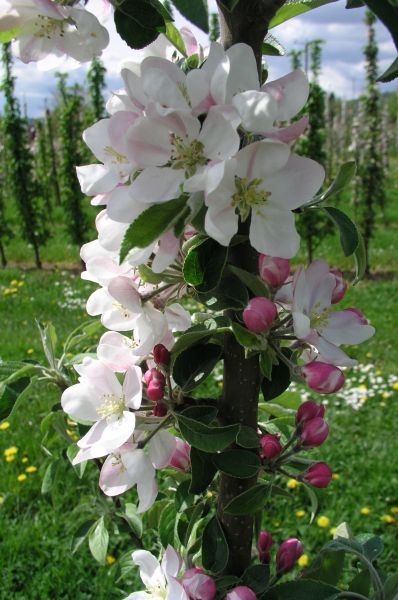 Did you know apple trees have really pretty flowers? Beautiful flowers to feed the bees in the spring and truly tasty fruits in the fall.