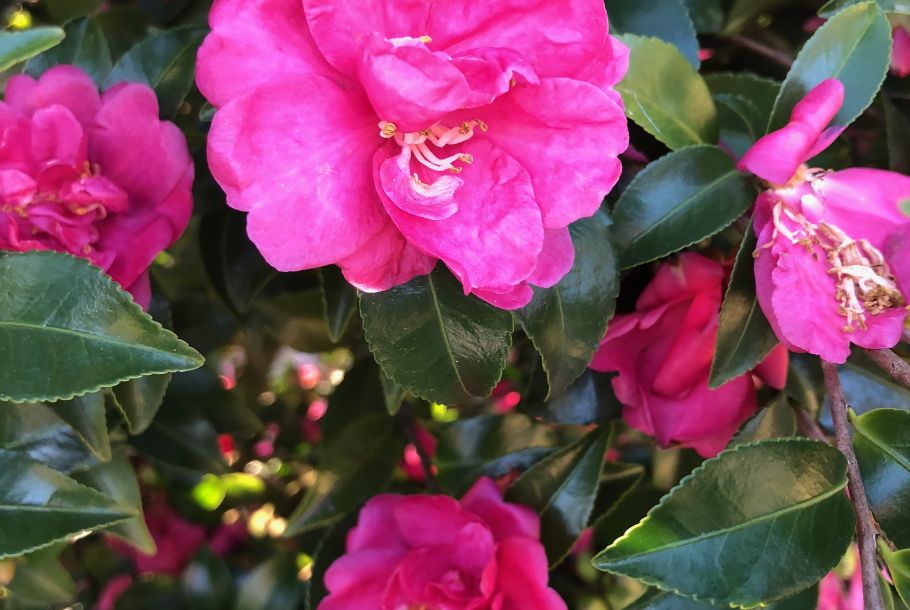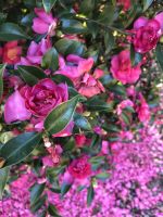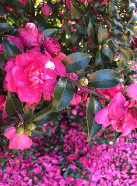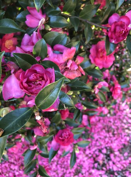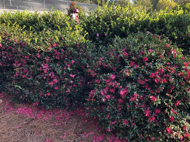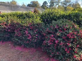 These camellias flower in fall. Should they need any pruning to shape them, be sure to do that in early spring to allow for enough time for flowers buds to form.