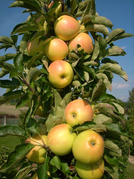 Skinny apple trees that need minimal pruning.