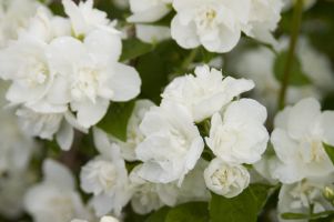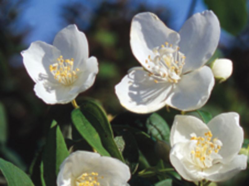 Once you experience the stimulating fragrance of philadelphus, you’re spring days will forever be filled with the sweet memory. An old-fashioned favorite, philadelphus is a deciduous shrub with a graceful, fountain-like habit and snow white blooms of the sweetest fragrance. Leave it to Plants Nouveau to offer a mock orange that gives an encore performance! Snow White is a versatile shrub with a wide growing range, the pure white, deliciously fragrant flowers are but one great attribute of this underutilized spring-flowering shrub. Attractive foliage on gracefully arching branches guarantees Snow White easy placement in the garden with other flowering shrubs. What charming impact: A wonderful new addition to the landscape border, with two seasons of flower and dark-green foliage that stands up to summer heat!