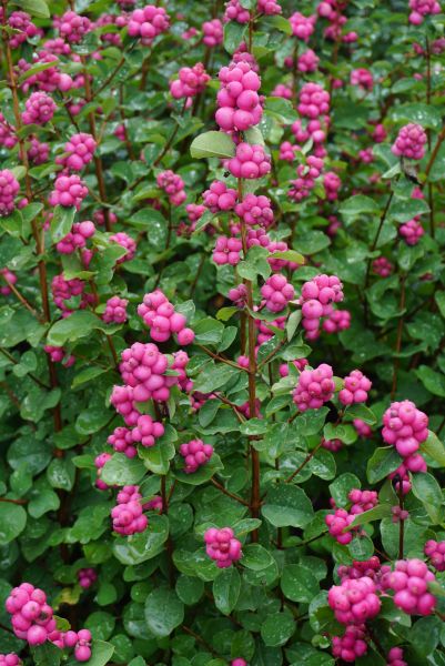 Symphoricarpos flower in early spring on new growth and fruit in late summer. To ensure maximum fruit production, prune no later than late winter.