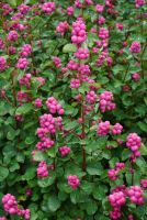 Masses of bright pink berries begin to form in late summer, creating clusters up and down every stem. As leaves fall, bare stems give way to an explosion of brilliant color. And… unlike our native snowberry, which can grow a bit rangy when taken out of its natural habitat, Symphony™ Pink is more compact and easily managed. A perfect plant choice to place in front of evergreen shrubs for a reliable supply of cut stems and winter interest.