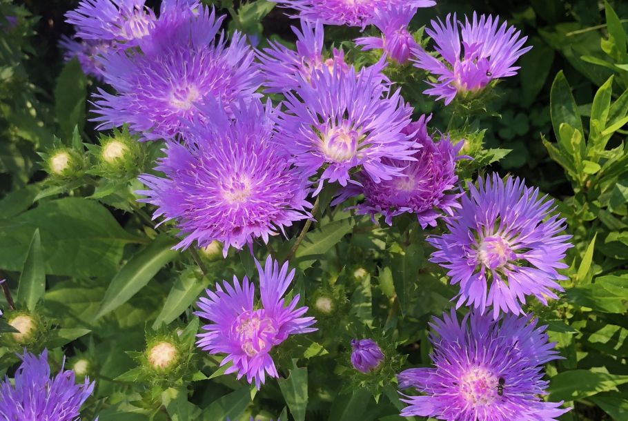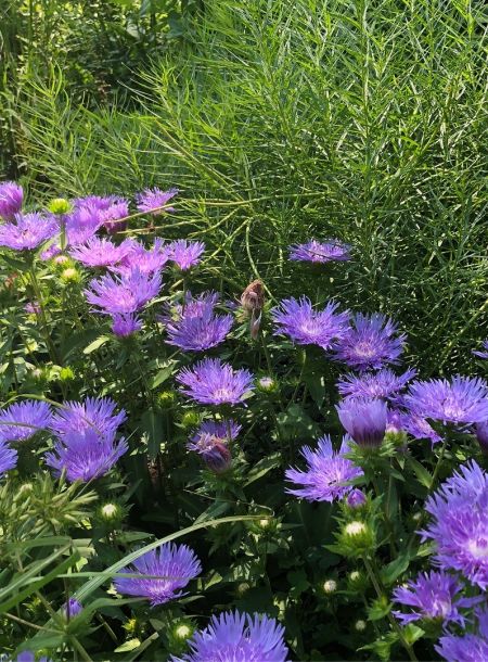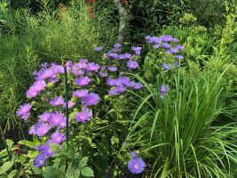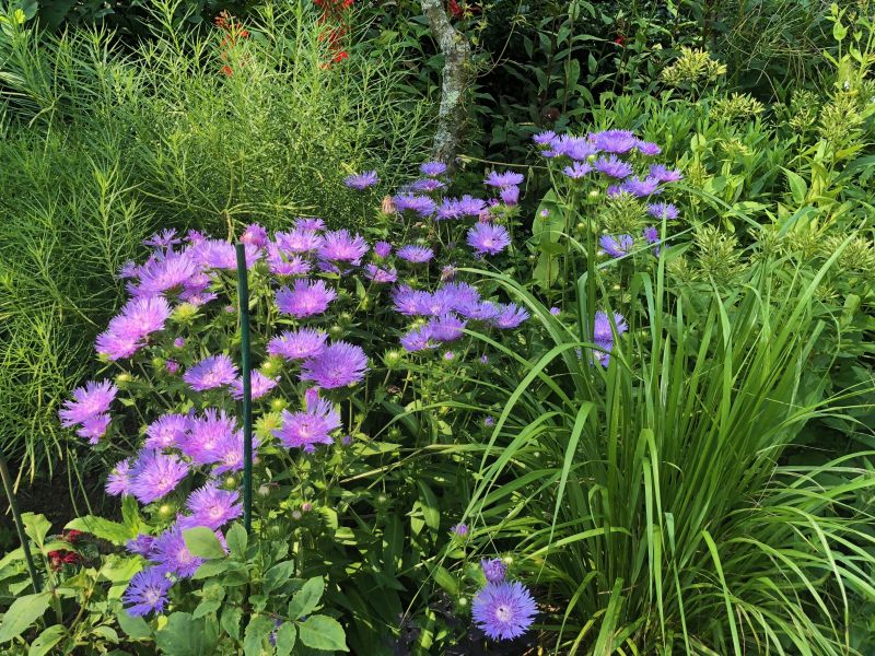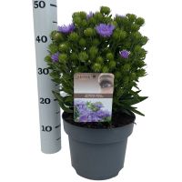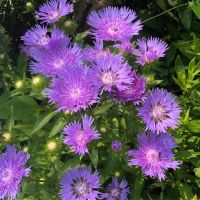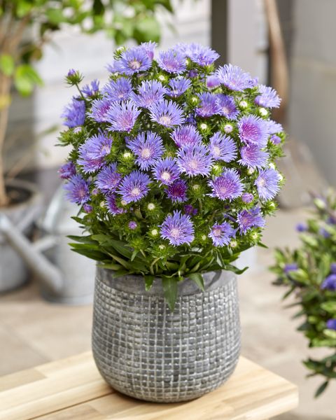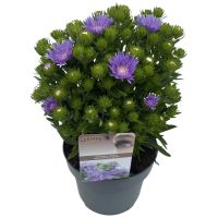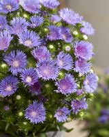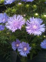 An upright selection with 4" wide periwinkle blue blooms held high and flat on strong stems. This is one Stoke's aster you can use for cutting.