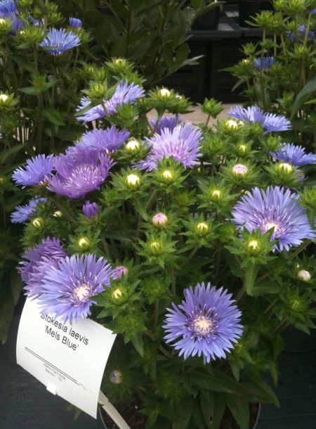 Usually, you have to get down on your knees to fully see the beauty of a Stoke's aster bloom. Not this new selection! Mels Blue comes to us from a nursery in The Netherlands and it's an in your face kind of Stoke's aster. Super large, highly visible, brightly colored blooms stand out well against the deep, grass green foliage to make for a stunning display in any garden. What I like about this one is the upright habit. It is loaded with blooms that open over a long period of time and will provide continual color for months in your garden or in mixed containers.
