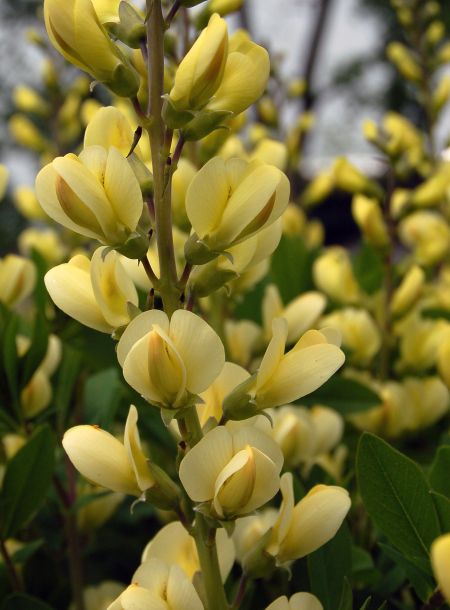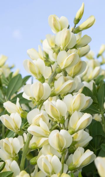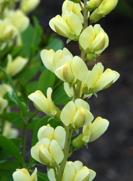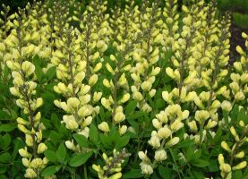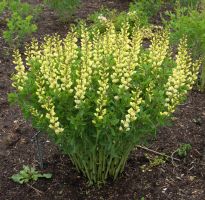 Selected especially for its heavy flower production, the light lemon-green flowers contrast nicely with the deep lime-green foliage. ‘Mojito’ begins flowering in early to mid-May, somewhat ahead of most other false indigos (USDA Zone 5). It also blooms longer than most false indigos—upward of four weeks. The vase-shaped habit in spring gives way to a more rounded habit during the remainder of the growing season. ‘Mojito’ has strong stems that don’t lodge, and its attractive foliage is darker in color than most other false indigos. This complex hybrid was developed from Baptisia australis, B. bracteata, and B. sphaerocarpa.
