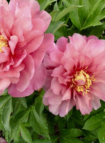 Imagine flowers made from sweet, creamy strawberry ice cream. Strawberrry Swirl is the clearest, cleanest, most perfect shade of pink we have seen in an ITOH. His was one of the first selections we chose from Don Smith’s breeding field and we are happy we did. It is dainty, yet strong and sweet as candy, of course. And like all of the other Garden Candy® selections, Strawberry Swirl is not only sweet, and full of 4" wide double flowers, it is deer and mildew resistant too. Plant this selection and expect three full seasons of interest with its lovely early summer flowers, super clean deep olive green leaves all summer, and then lovely maroon fall color.
