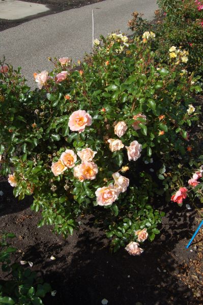 A mounding, easy to care for rose with semi-double, peach colored flowers that bloom from spring through summer, and then fade to a soft pink. Ideal for urban gardens where a manageable size and showy flowers count is important. Lovely in mass plantings, on a slope for erosion control, or in coastal settings, where they are tolerant of salt air.