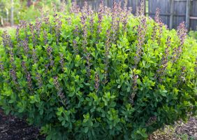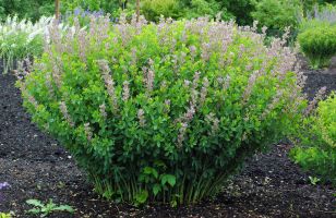 Twilite is a long-lived easily grown bicolor baptisia, selected from a controlled cross by Dr. Jim Ault. Twilite is unusually quick to mature for a baptisia; three-year-old plants produce upward of 100 flowering racemes. Blooms are long lasting, beginning in late May and continuing through the first weeks of June. The blue-green, trifoliate foliage stays spotless all season. Twilite needs ample space to stretch in the garden, as the plant can reach 5' tall x 4' to 5' wide. An extremely robust and vigorous selection, Twilite features lupine-like flowers in a smokey violet