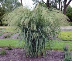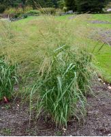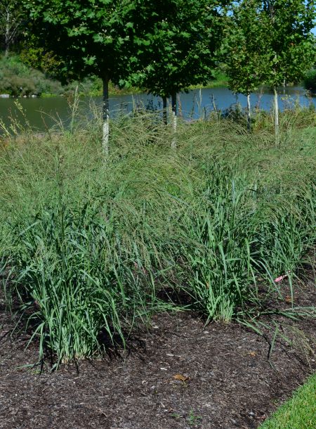 This is a large grass with an extensive root system, so space and site it accordingly. Adaptable to clay, loam, and sandy soils, as long as they are well-drained. We have not seen this selection lodge in our trials, but to be sure grow it in full sun with good air circulation, and avoid overly wet and nutrient-rich sites. With its genetic heritage, this selection may prove more salt and drought-tolerant than many selections of switchgrass (P. virgatum). Test it under these conditions and send us the results.