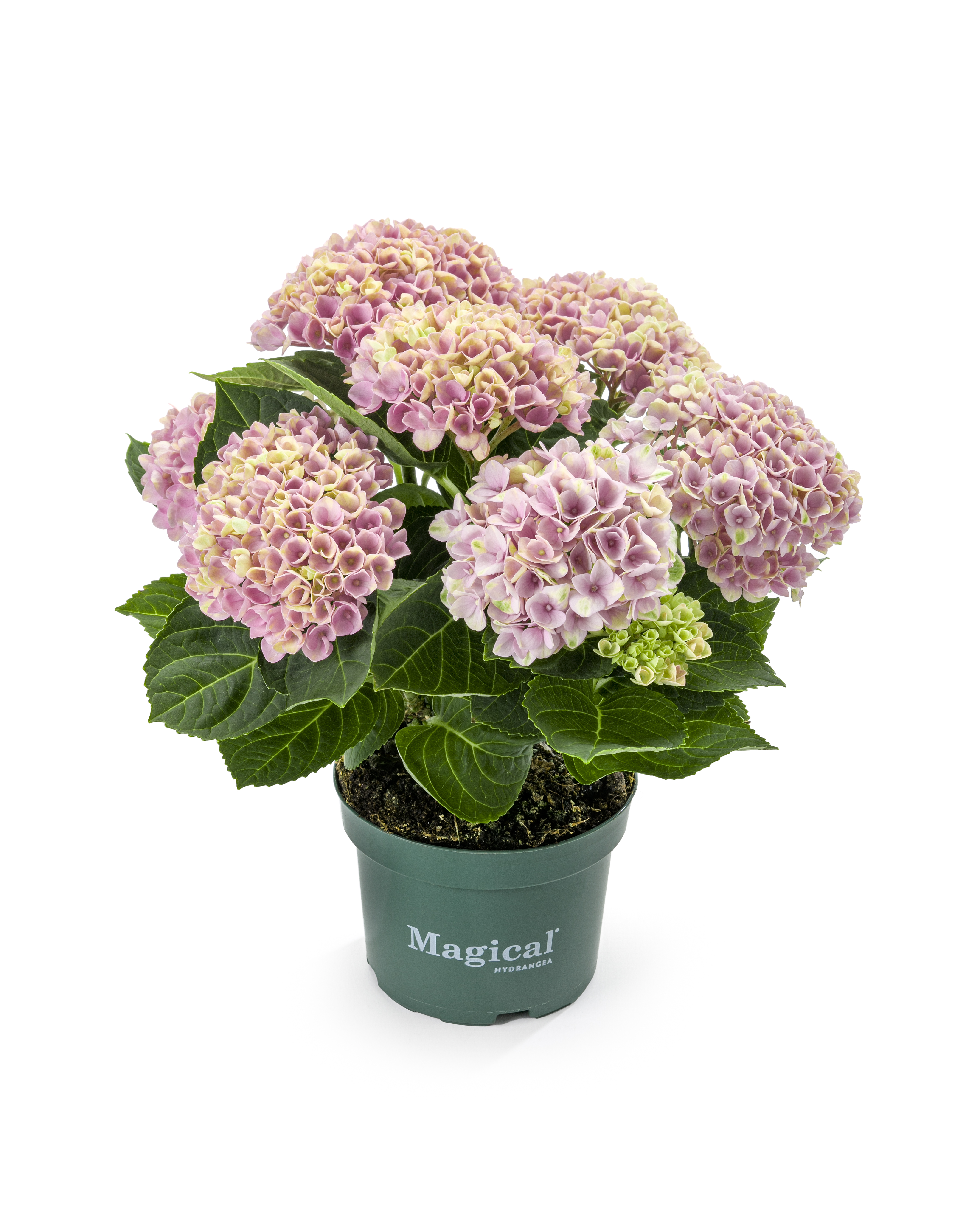 We know you will love the long lasting, strong flowers of the Magical® series with their variety of colors, handsome foliage, and long-lasting flowers. As the flowers age, they change from one exciting color to the next. You will enjoy many colors at one time as each flower lasts for months. Each stem is a bouquet, and even a young plant will give you months of blooming enjoyment. Repeat flowering hydrangeas often disappoint because they bloom so sporadically. Buy this plant and enlighten your garden with a blooming revolution. Revolution not only flowers on new and old wood, making it sure to bloom for everyone, but the flowers fade to magical color combinations of deep pink, maroon and true blue, adding green highlights as they age over a long period of time. This is the most attractive re-blooming hydrangea ever. Not only is it a gorgeous, tough, long-lasting flower, it’s a blooming machine that is certain to please.