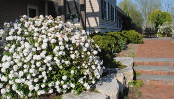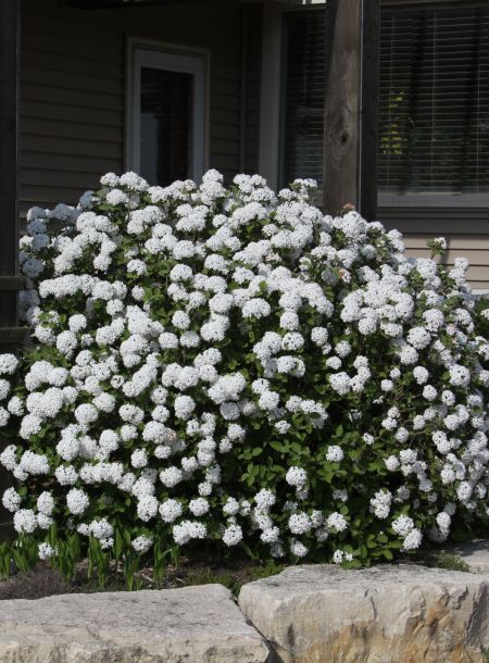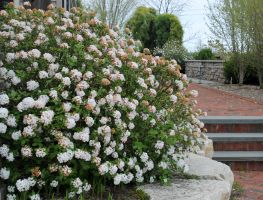 Viburnum Spice Island™ offers all of these nuances and so much more! Delightfully fragrant, pink buds open to white snowball-like clusters. And unlike many viburnum carlesii, this variety blooms with its leaves fully expanded as a backdrop, enhancing the beauty of the flowers. And as the warm summer breezes make way for crisp autumn air, Spice Island’s™ leaves turn to brilliant shades of burgundy and glowing red. A compact grower, Spice Island™ is slow to mature, perfect for garden paths, smaller spaces and as a specimen plant.