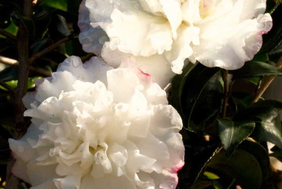 The October Magic® Series of Camellia Camellia sasanqua is a fall blooming species. Some of these new selections have proven hardy in USDA Zone 6, but we are saying zone 7 to be safe. As summer fades and the nights begin to cool, the October Magic™ Series usher in the camellia season in beautiful fashion. Graceful in form and one of the loveliest of autumn flowers, the soft fragrance of sasanquas conjure up memories of southern gardens amass with blooms. These new selections offer all of the nuances we’ve grown to love in sasanquas and then some. There’s a shape, size and color to fit any garden. Fully double white blooms appear as pom-poms with an extra layer of petals. A fine line of rose pink dusting complements each bloom.
