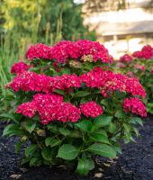 Tight, bright fuchsia flowers adorn this super tough, hardy hydrangea.