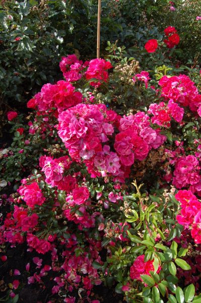 A low growing , disease resistant shrub rose with fully double deep pink flowers for most of the summer.