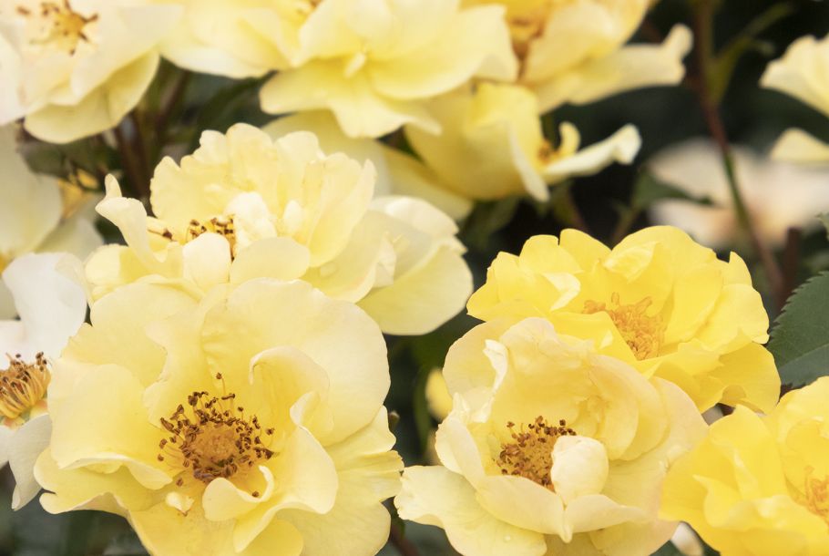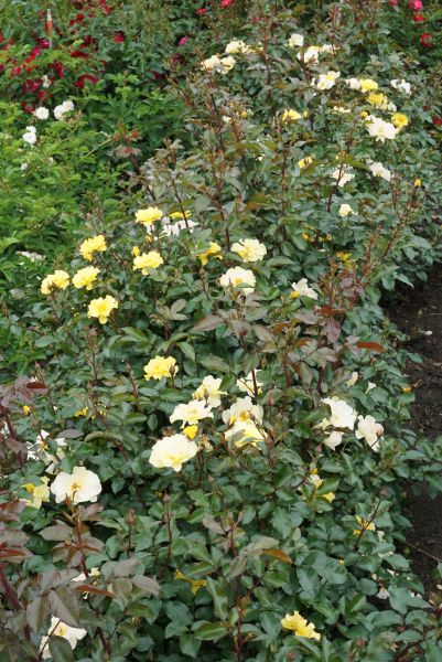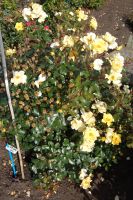 A low growing, disease resistant shrub rose with semi-double lemon yellow flowers for most of the summer.