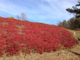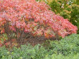 A deciduous multi-stemmed shrub with a refined, compact habit making it much smaller than the species. Prairie Flame has extremely glossy, attractive foliage, creamy-white blooms in late July and striking deep red fall color. This compact sumac can be grown in a wide variety of soils and landscape conditions. It is very drought-tolerant and grows best in full sun. Flame is an excellent colonizing plant. Plant it in front of evergreens to maximize its glorious fall color. This selection is fruitless and thrives as a companion for native or naturalized plantings. It is also useful for soil stabilization on slopes. This superior selection is perfect for massing and naturalized plantings. Planted as a specimen or en masse, this sumac will provide a colorful display from late spring with its extremely glossy foliage through a full frost with its dependable, fire-engine red fall color. Also useful for slopes, open areas and roadside plantings.